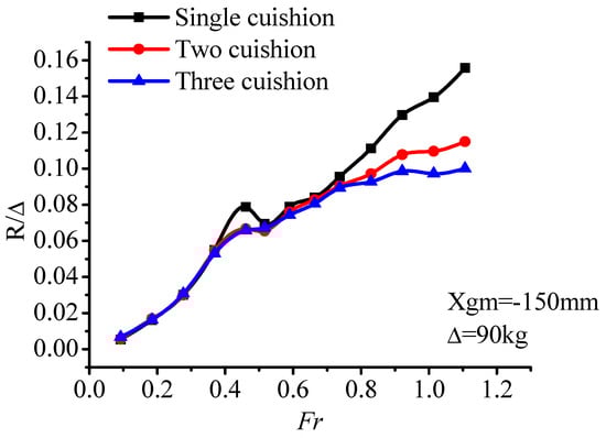 By calculating the difference between Rt, (total resistance) and other resistance components, total wave-making resistance Rw (including air cushion and hull wave-making resistance) is obtained. In the actual situation, both Raw and Rhw are interacted and mixed. Using Rw is more likely to explain the composition and proportion of the wave-making resistance.