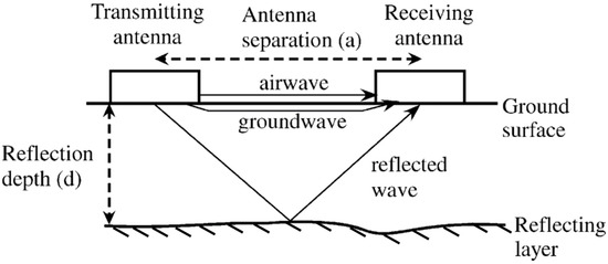 In the case where the depth of the subsurface reflective medium is known, the average velocity of the GPR electromagnetic wave can be obtained by [38]: