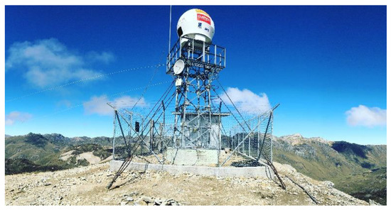 The highest weather radar in the world, named CAXX, is part of the new radar network installed in southern Ecuador, RadarNet-Sur [17]. The network consists of three X-band, single-polarized radars. The sensor is a Rainscanner-RS120 Gematronik, located on Paragüillas peak at 4450 m a.s.l. on the northern border of the Cajas National Park near the city of Cuenca (Figure 2).
