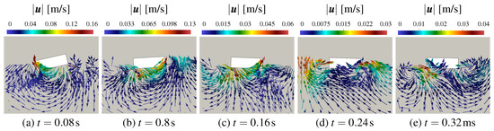 Figure 6 depicts the free surface evolution for m, qualitatively demonstrating the capability of the proposed methodology to capture the most relevant features of hull water entry. In fact, bulk flow and pile-up can be clearly identified in Figure 6.