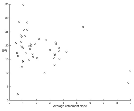 Figure 9 shows the relation between the average catchment slope and the combined sensitivity (S/R). The separate sensitivities to land-use changes and climate changes are not shown, because these relations did not provide any complementary information. Figure 9 does not show a clear trend, but a weak decreasing trend might be detected rather than an expected increasing trend. This might be the result of only including relatively flat catchments (mostly slopes less than 4 degrees).