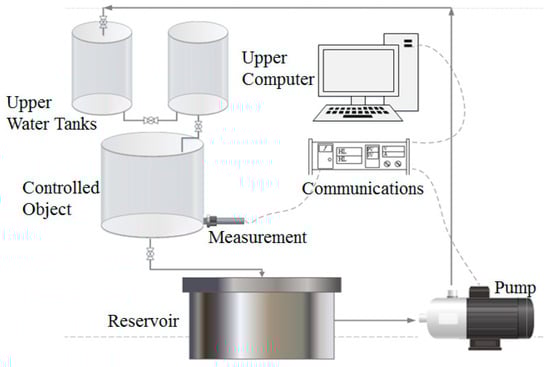 Water pump control, which is widely used in various chemical industries [1,2,3], such as in regenerative heaters [4] and drum boilers [5], petrochemical processes [6], open channels [7], surge tanks of hydropower stations [8], and steam generators [9,10,11,12], plays a significant role in maintaining economic efficiency and stable plant operation. For instance, in thermal power plants, the drum boiler water level is a key parameter in monitoring boiler operational conditions, which indirectly reflects the balance between the steam load and water supply. An appropriate pump control design is able to maintain the water level and thus guarantee the safe operation of the boiler [13]. Furthermore, for nuclear steam supply systems, one of the most important control strategies of such a system is steam generator water level regulation to preserve the level around programmed setpoint, because the reduction of the water level jeopardizes the heat removal from the reactor, and increasing the level will cause the humidity of the generated steam to rise, causing severe erosion of the turbine blades [11].