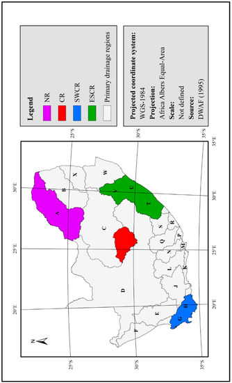 - DWAF. GIS Data: Drainage Regions of South Africa; Department of Water Affairs and Forestry: Pretoria, South Africa, 1995.