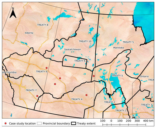 The Canadian Prairie, the geographic boundary of this research, is wholly contained within numbered Treaty agreements forged between the Indigenous land occupants represented by hereditary leaders and European newcomer society represented by the British Crown. The purpose of the ‘Numbered’ Treaties, most signed between 1870 and 1890, was to establish peaceful, trustful relations between the British Crown, later Canada, and the Indigenous occupants, later known as First Nation people. The Treaty agreement included resource sharing and the protection of land- (and water-) based rights of First Nations, though there is disagreement between settler and Indigenous interpretations of the intent and meaning of the treaties. With Treaties came the establishment of ‘lands reserved for the Indians’, held in trust and managed by the federal government. Viewed in terms of territoriality, the Numbered Treaties were “a continuation and intensification of the re-territorialization that ensued at the end of the 19th century with the passing of the Constitution Act in 186 and the Indian Act in 1876” [18] (pp. 164–165).