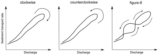 Types of bedload transport hysteresis. Arrows denote hysteresis direction.