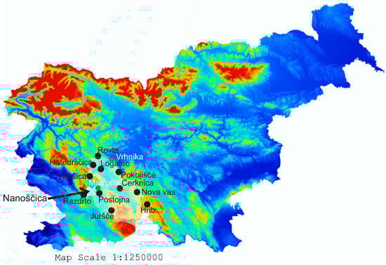- Habič, P.; Kos, V. Reference Karst. In The Encyclopedia of Slovenia; Mladinska Knjiga: Ljubljana, Slovenia, 1987. [Google Scholar]