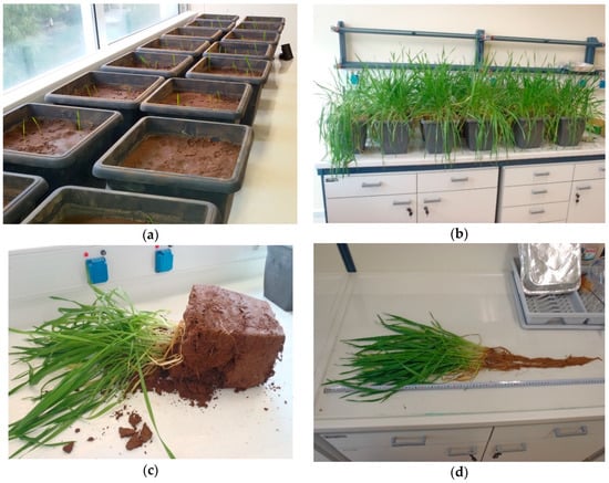 To determine the effect of zeolite saturated with NH4+-N on plant growth experiments were carried out using wheat plants (Triticum spp.). Wheat was chosen due to its rapid growth and nitrogen fertilizing needs. The experimental procedure, which followed literature guidelines [], included the following.