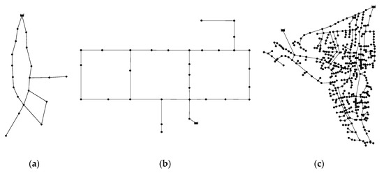 - Walters, G.A.; Lohbeck, T. Optimal Layout of Tree Networks Using Genetic Algorithms. Eng. Optim. 1993, 22, 27–48. [Google Scholar] [CrossRef]