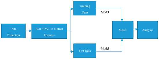 The processed dataset is then divided into training and testing data sets. The training data set is used to develop the model whereas the testing data set is used to quantify the accuracy of the model built. A larger portion of data is separated for training and the remaining is used for testing and validation to ensure accuracy of the classification model built and software performance. Figure 2 shows an overview of the overall analytical process employed in this study. The raw data collected is fed to FDAT tool for data cleaning, normalisation, aggregation, and other pre-processing steps. The output data is divided into testing and training data and passed through the ML/data mining tool, the patterns are extracted, and the model is built, followed by analysis to verify its quality.