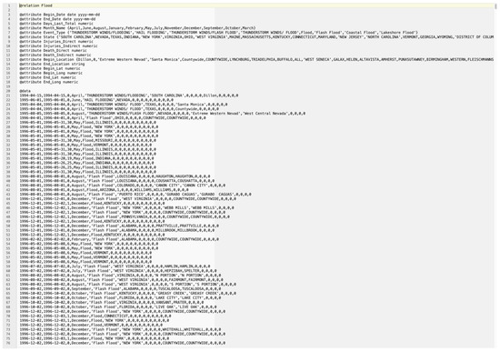One of the most important requirements for this research was a detailed historic and inclusive data set, which was acquired from Federal Emergency Management Agency (FEMA) [20], National Oceanic and Atmospheric Administration (NOAA) [21] and National Climatic Data Centre (NCDC) [21]. The data used in this study covers the period of 1950 until 2018. However, the data of flooding events is recorded from the year 1994 onwards and is inclusive of all event types, i.e., heavy snow, thunderstorm, fog, hail, flood, high wind, etc. Table 1 summarises the different attributes used to build models within the ML based framework.