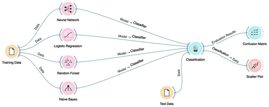 - Demsar, J.; Curk, T.; Erjavec, A.; Gorup, C.; Hocevar, T.; Milutinovic, M.; Mozina, M.; Polajnar, M.; Toplak, M.; Staric, A.; et al. Orange: Data mining toolbox in python. J. Mach. Learn. Res. 2014, 14, 2349–2353. [Google Scholar]