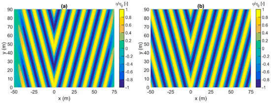 In addition, at the wave generation boundary, apart from the progressive waves, evanescent modes are included as well. These evanescent modes are a general characteristic of the Equations (9)–(11). Hence, Equation (16) can be rewritten as