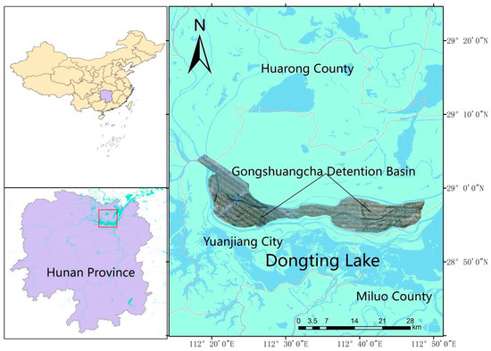 The location of the Gongshuangcha detention basin in the Dongting Lake area.