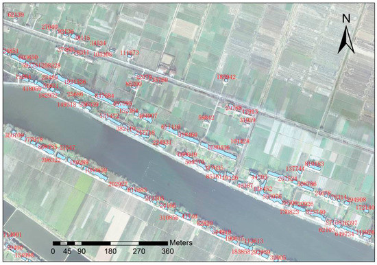 As a typical rural area in the middle reaches of the Yangtze River, the buildings in Gongshuangcha consist of two main types: brick–concrete (Figure 9a) and brick–wood (Figure 9b). The former are mainly distributed in township municipal centers while the latter are widely distributed in rural residential areas; these are the most numerous and typical in the study area.