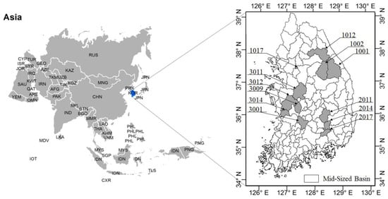 - Ministry of Land, Infrastructure and Transport (MOLIT). Comprehensive Master Plans for Han River Basin; MOLIT: Seoul, Korea, 2008.