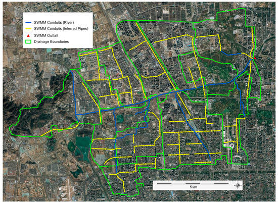 - Chang, X.; Xu, Z.; Zhao, G.; Du, L. Urban rainfall-runoff simulations and assessment of low impact development facilities using SWMM model-A case study of Qinghe catchment in Beijing. J. Hydroelectr. Eng. 2016, 35, 84–93. [Google Scholar]