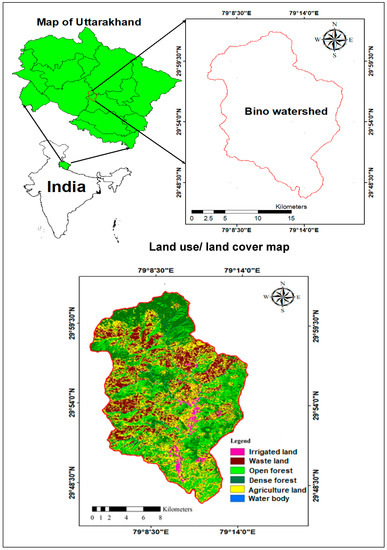 Location and LULC map of Bino watershed in Uttarakhand State.