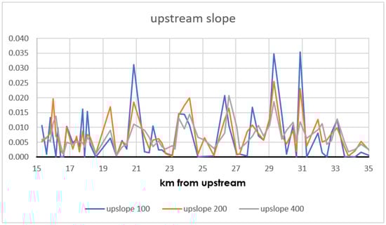 Plot of the upstream slope calculated using the three distances from the upstream.