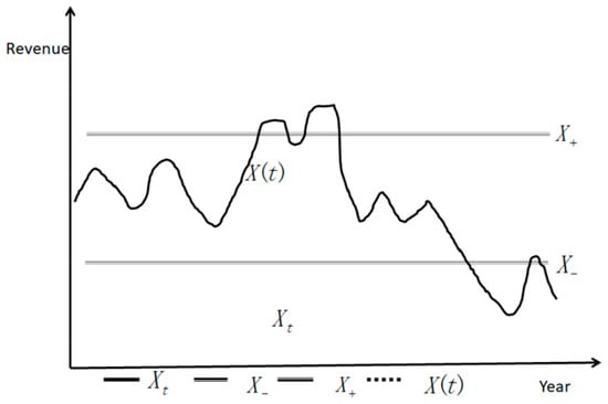 The revenue of a typical PPP project is a combined result of the MRG (minimum revenue subsidy) and ERS (excess revenue sharing mechanisms) [,]. This mechanism balances the profit of projects by providing the private sector support against revenue risks borne from low revenue and giving the government the right to capture the excess revenue []. When the revenue fluctuates wildly, the MRG and ERS mechanisms can improve welfare by sharing the risks. In practice, the two parties will negotiate to determine terms that are mutually agreeable.