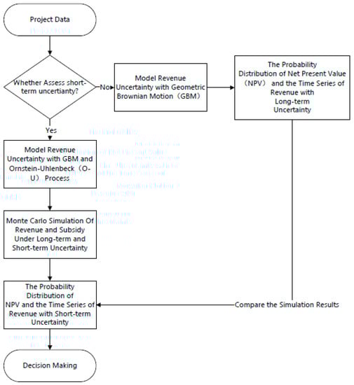 In this paper, uncertainties are classified into long-term and short-term uncertainties in order to study the influence of time duration on project revenue and government subsidy []. Long-term uncertainties are the uncertainties leading to the long-term trend of volatility of economic indicators, and short-term uncertainties are the uncertainties leading to the short-term volatility of economic indicators. Long-term uncertainties include the supply-demand structure, macro economy, macro-policy, etc. Short-term uncertainties include unexpected events, such as short-term financial crises and political instability, natural calamities, etc.