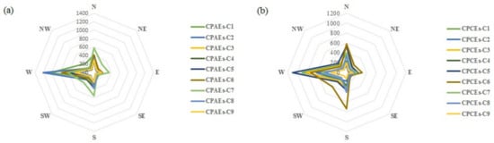 The inter-community movement directions of CPAEs (a) and CPCEs (b).