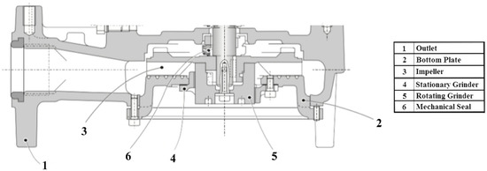 A detailed section of the hydraulic components of the tested pump is shown in Figure 2.