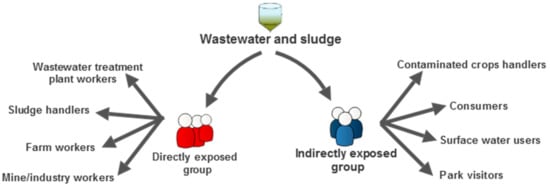 Individuals belonging to the directly exposed group to wastewater and sludge have a 40% greater risk of contracting STH infections than indirectly exposed individuals [1] (Figure 1). Infected individuals release helminth ova into wastewater that can potentially contaminate soil, plant and surface water, where helminth ova can survive up to several years [1]. Exposure to wastewater and sludge contaminated with viable STH ova can lead to potential public health risk [23,26]. This risk is based on the concentration of ova that remain viable in the environmental matrices, the infective dose, route of exposure and the susceptibility level of the exposed person [4]. The presence of ova and its concentration in wastewater relies on the incidence of infections within the surrounding communities [27].