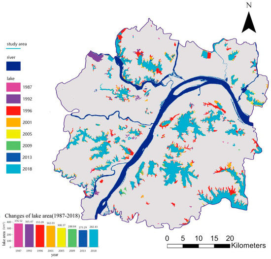 Lake evolution map of Wuhan urban development area in 1987–2018.