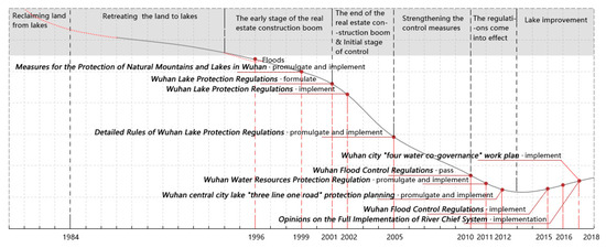 This process can be corresponded to the change of urban policies. At the beginning, economic construction was vigorously developed and stimulated urban expansion, whereas environmental protection in the development process was neglected. Lake filling activities were unsupervised, and people’s awareness of protection was insufficient. Then, as the negative effects brought by urban expansion were gradually revealed, people’s pursuit of living environment quality was significantly improved, and the idea of improving urban quality and curb chaotic urban sprawl became the mainstream. Policies to protect lakes and repair the ecological environment were also implemented one after another.