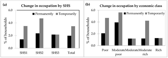 Change in occupation of households in the study area. (a) Change in occupation by SHS. (b) Change in occupation by economic class.