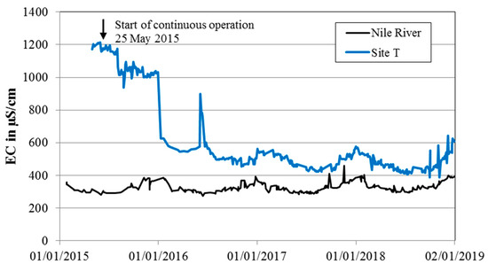EC readings during the initial phase of RBF at Sohag, site T, 2015–2018.