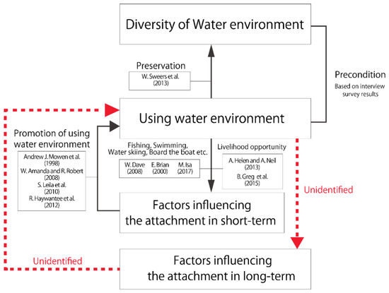 Previous studies related to this study were classified into four categories: (1) research related to preserving water environments; (2) research related to the formation of an attachment toward the water environment and places; (3) research related to promoting the use of water environments; and (4) research related to the Fukushima-gata lagoon.