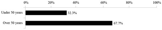 Figure 5 shows the residence years of the targets. The ratio for over 50 years was 67.7%. Therefore, the majority of the targets had knowledge about some situations in the Fukushima-gata lagoon before the reclamation project. You can see the respondent attribute as basic information in Table A1 and Table A2.