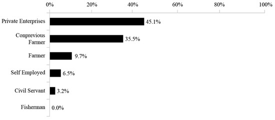 Figure 6 shows the occupations of the targets. The ratio of private enterprises (45.1%) and part-time farmer (35.5%) were relatively high than the others.