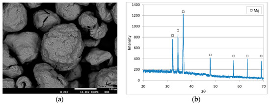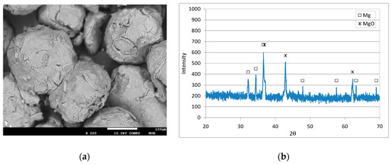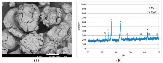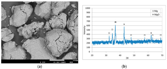 The magnesium particles (purity 99% and density 1.74 g/mL) used in this work had an overall size range of 60 μm and 510 μm, with the majority of particles characterized by dimensions between 200 μm and 300 μm. They showed both pseudo-spherical and irregular shapes, with a mildly rough and jagged surface. The specific surface area (A) was about 0.0204 m2/g.