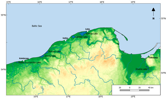 Moreover, as a result of climate change, positive trends of the maximum water levels in the Baltic Sea were detected. It was found that in the years 1889–2006, the maximum water levels increased on average from 0.39 cm/year in Świnoujście and Kołobrzeg to 0.54 cm/year in Gdańsk [6]. It is worth noting that correlations between the studied coastal lakes and the Baltic Sea refer not only to their water levels: the coast of the Baltic Sea is a place where high qualitative and quantitative variability of biotic [16,17,18,19,20] and abiotic elements [7,8,9,10,11,12,13,23] is observed, too.