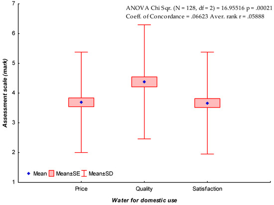 Box and whisker plot comparing price, quality and degree of satisfaction of water tap.