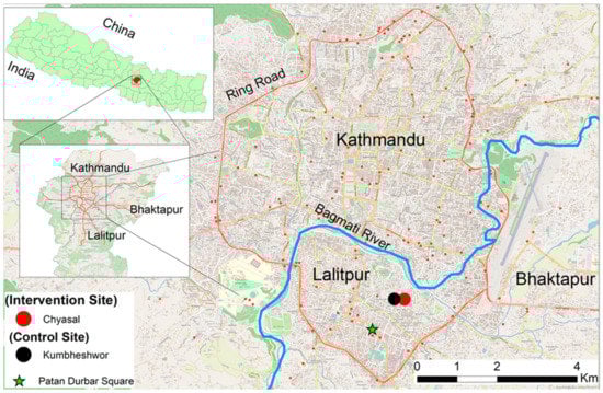 Location of intervention (Chyasal) and control (Kumbheshwor) sites in the Kathmandu Valley.
