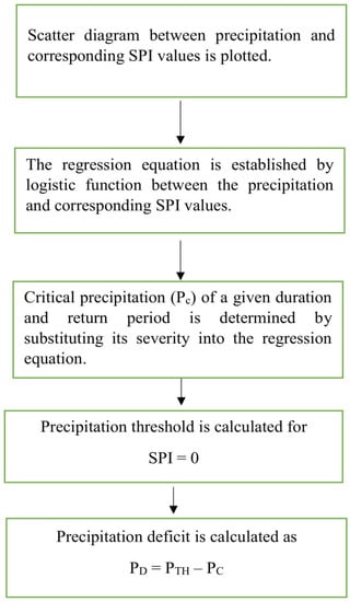 for each drought of a given duration and return period. A flowchart of the steps that will be implemented for calculating the precipitation deficit is given in Figure 7.