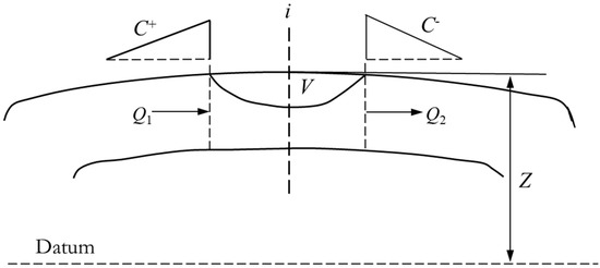 in which is the piezometric head at the location of the vacuum breaker valve, m, CP, BP, CM, BM are constants; is the inflow of the section; is the discharge flow of the section; is the volume of gas, γ is the specific gravity of water, ; is the pressure of the gas in the air valve, Pa; is the atmospheric pressure, Pa; is constant to be the height of the pipe top at the location of the air valve, m; and is the cross-sectional area of the valve hole, .