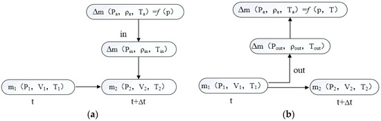 As shown in Figure 2, at the beginning of the time step, the mass of the air in the air valve is with the state of , and , while at the end of the time step, the mass of the air in the air valve changes to with the state of , and .