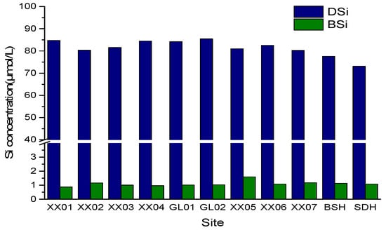 DSi and BSi concentrations at each site (mean value, N = 23 at each site).