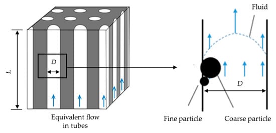 As shown in Figure 2, the equivalence guarantees the same discharge due to seepage flow under the same hydraulic gradient as well as the same porosity in average. The shear stress τ is then defined at the wall of tube. Using the Poiseuille law, it can be obtained by the following:
