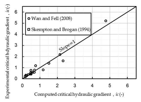 Furthermore, in the next section, more experiments (studies by Lau in 1984 []; Lafleur et al. in 1989 []; and Chapuis in 1996 []) are also included when examining the model’s capability in predicting internal stability.