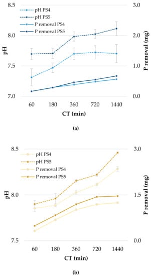 Effects of PS Pi and CT on the removal of P. (a) Pi: 5 mg L−1; (b) Pi: 20 mg L−1.