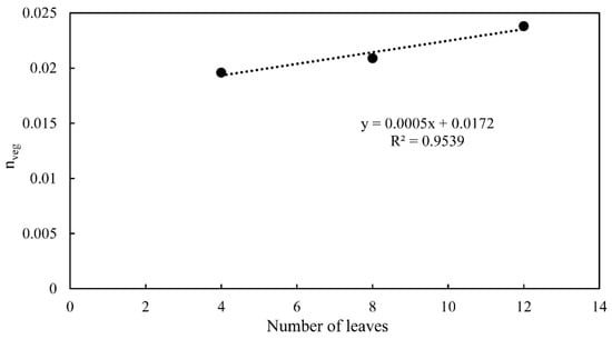 Relationship between the Manning’s roughness coefficient and the number of leaves.