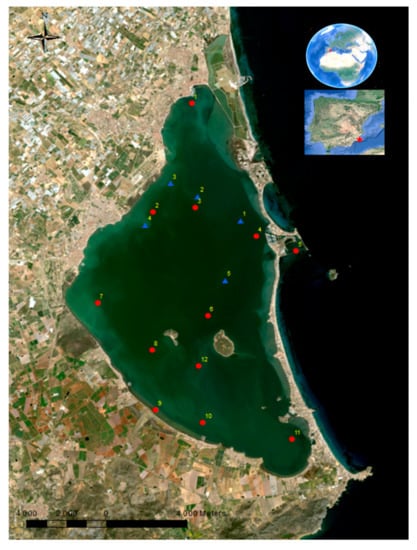 - Marin, A.; Lloret, J.; Velasco, J.; Bello, C. The physio-geographical background and ecology of Mar Menor. In Coastal Lagoons in Europe: Integrated Water Resource Strategies; Lillebo, A.I., Stalnacke, P., Gooch, G.D., Eds.; IWA Publishing: London, UK, 2015; pp. 39–46. [Google Scholar]