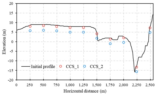 | CCS_1: channel change by 59 cm | Scenario 1–1: responses of hydrodynamics during typical moderate hydrological year to average annual channel change | Scenario 2–1: responses of hydrodynamics during typical dry hydrological year to average annual channel change | Scenario 3–1: responses of hydrodynamics during typical wet hydrological year to average annual channel change |