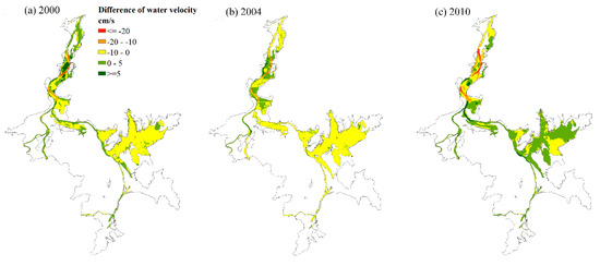 3.4. Response of Water Velocity in Low Water Level Periods to Bathymetric Changes