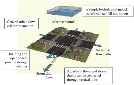 53. Mascarenhas, F.C.B.; Miguez, M.G. Urban flood control through a mathematical cell model. Water Int. 2002, 27, 208–218. [Google Scholar] [CrossRef]